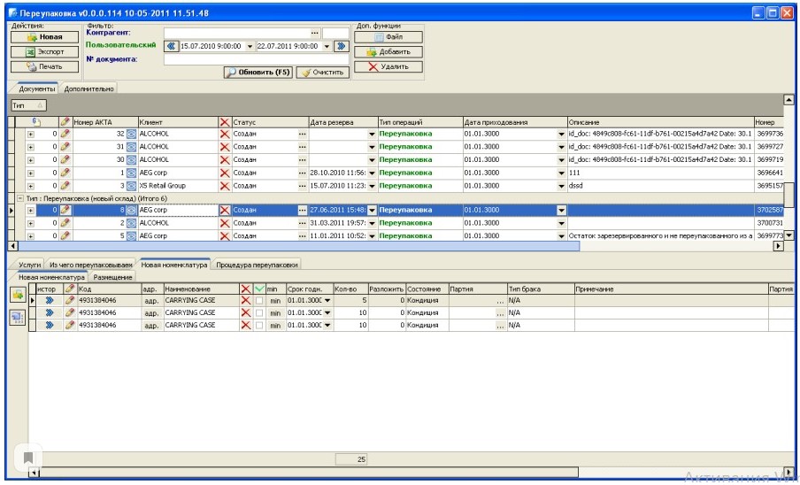 - Обновление списка актов переупаковки