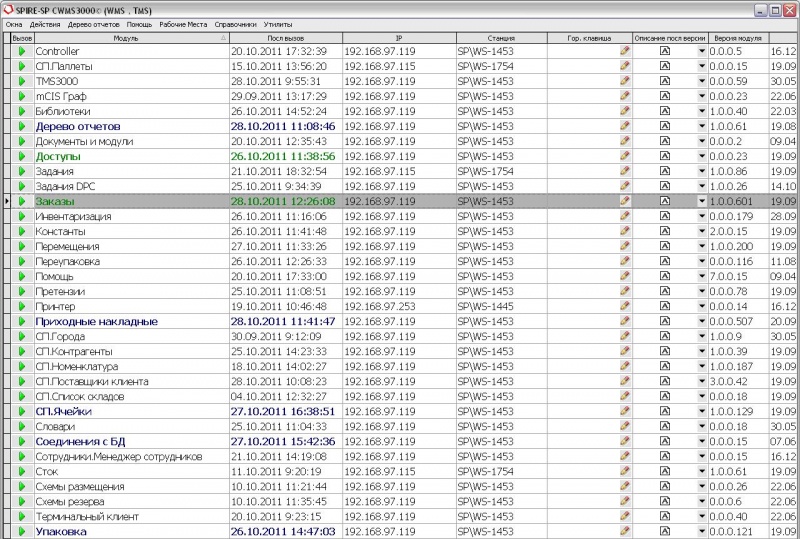 В верхней части окна модуля заказов, аналогично модулю приходов, находится меню управления сортировки и отбора приходов по (номеру, дате, номенклатуре номеру паллеты (PID) и т.д.), а так же кнопки создания заказов или загрузки вручную, кнопка доп. модулей, кнопка вызова модуля печати и т.д.