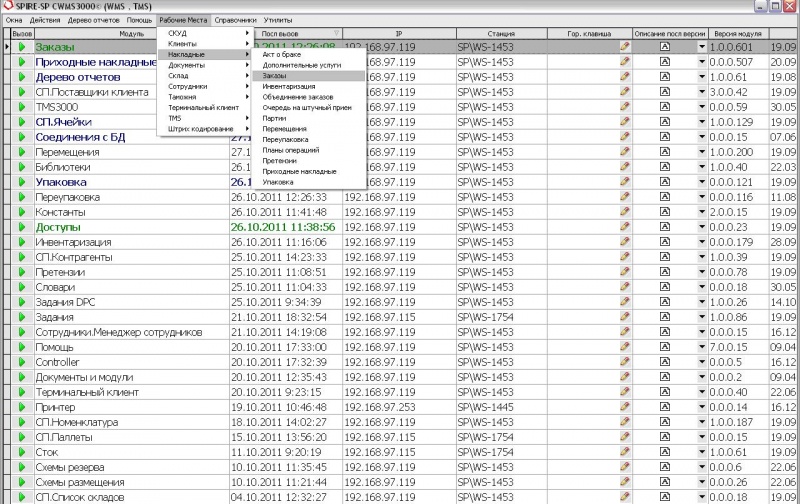 При запуске модуля Заказы в первый раз он запускается из меню верхней панели: Рабочие места -> Накладные -> Заказы