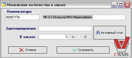 - Редактируемое поле количества необходимого для резерва в заказе