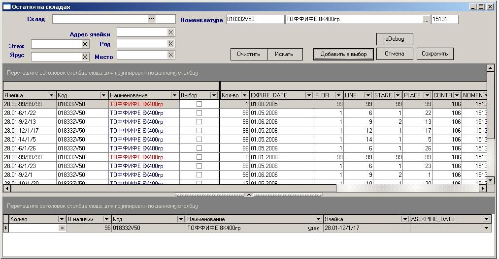Статус в стоке | Нет | Unsigned Byte | 1-Приходован на склад 3-Перемещение 5-Переупакован 6-Зарезервирован 8-Зарезервировано на переупаковку 9-Безадресная резервация под заказ 10-Неофактуренный приход 12-Забраковано |