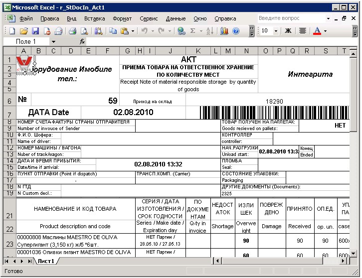Срок годности | Нет | String | Срок годности dd.mm.yyyy |