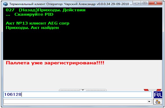 Тип паллеты | Нет | Unsigned Byte | ссылка на словарь 359: 1-евро 2-амер и др |