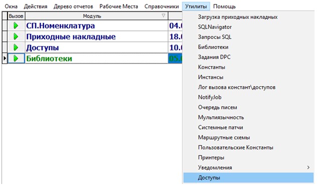 1) Заходим в Утилиты -> Доступы.