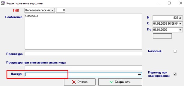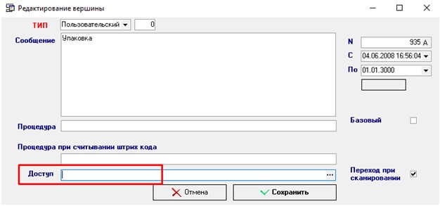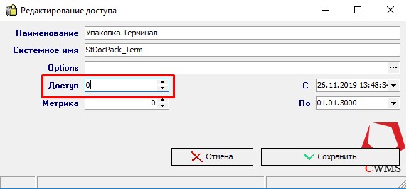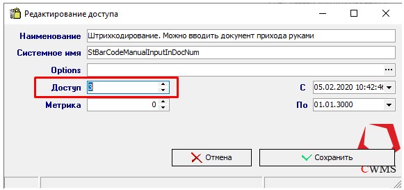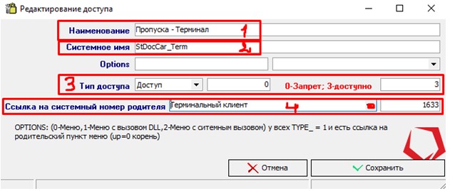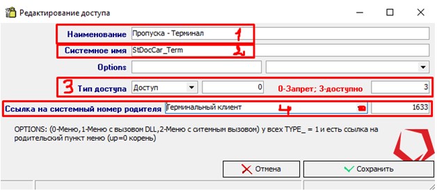 3. Тип доступа «Доступ», указываем 3 или 0 (3 – Разрешить, 0 - Запретить)