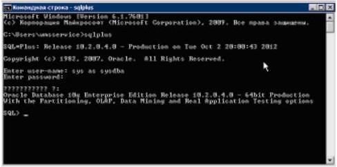 connect sys/Пароль