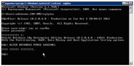 Шаг 7(sqlplus) Выполняется на основном сервере.