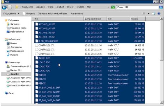 Рис1. задание BACKUP выполняется НЕПРЕРЫВНО . Основной сервер база данных Oralce 10G 10.2.0.4 orawms-01 в режиме реального времени (не позже чем раз в 5 минут) передает ARCHIVELOG на резервный сервер Oralce 10G 10.2.0.4 orawms-02 , который в свою очередь производит все транзакции произошедшие на основном сервере. Процессом управляет встроенные в Oralce 10G 10.2.0.4 механизмы DATAGUARD . Сервера автоматически находят друг друга (выключение сервера, перезагрузка сервера, выключение и простой до 24 часов) при условии нахождения в рамках одной ЛВС (Локально Вычислительной Сети) и неизменности сетевых реквизитов указанных выше, и синхронизируются .