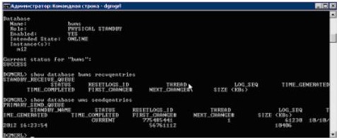(команда возвращает таблицу лог-файлов, полученных из основной базы, но не примененных к резервной. При синхронной работе таблица должна быть пустой)