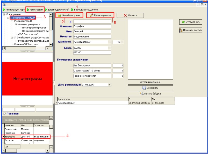 9) Если доступ уже имеется, то необходимо назначить данный доступ сотруднику (На примере покажу как скрыть данный переход у сотрудника Герасимов С. Э.) с доступом 0.